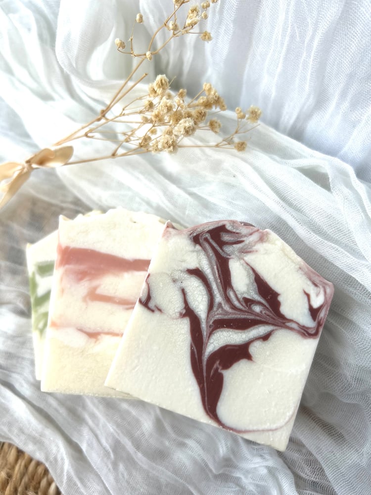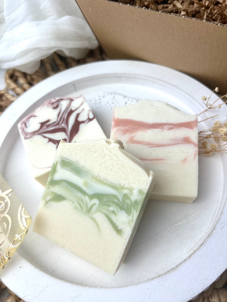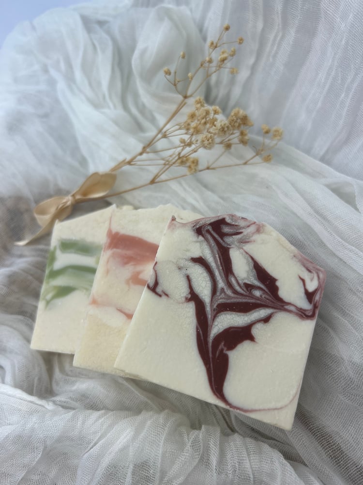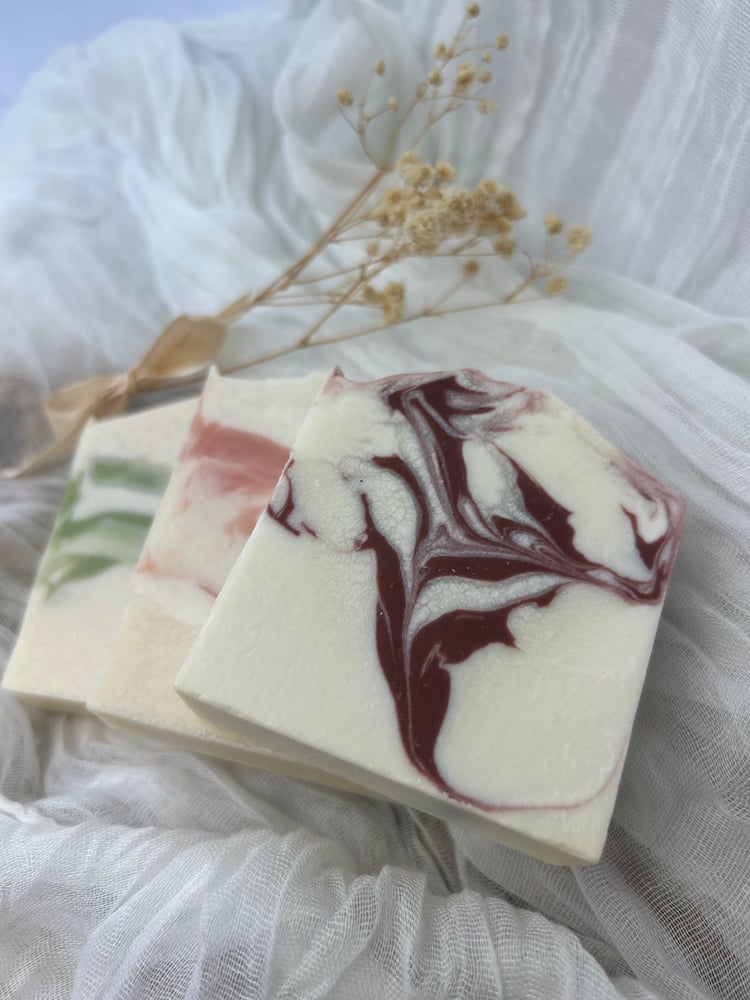 Colors in every bar of soap come from Clays that are widely known for there Highly Nourishing and renown dense Mineral content as well as for their Detoxifying, Exfoliating and Cell-Regenerating Properties. Widely used Across the Globe in Skin Balancing & Hydrating Face & Body Masks.
