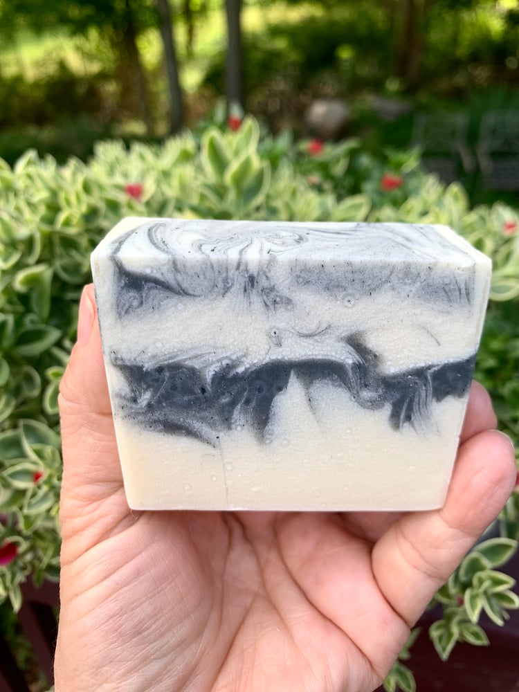Ingredients: Organic Shea Butter, Organic Coconut Oil, Castor Oil, Avocado Oil, White Kaolin Clay, Activated Charcoal, Spring Water, Sodium Hydroxide, Titanium Dioxide & Essential Oils