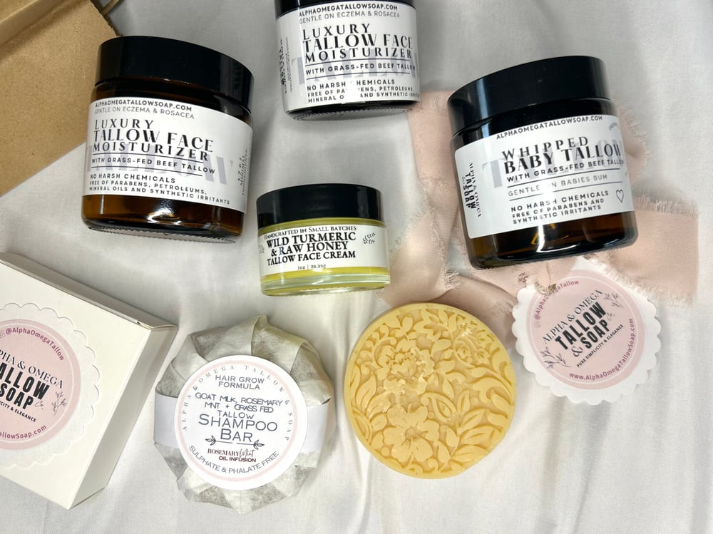 We use only the 100% Grass-Fed Tallow in our Face Moisturizers & Whipped Tallow Body Balm. Prepared in small batches - also available in 3.4oz