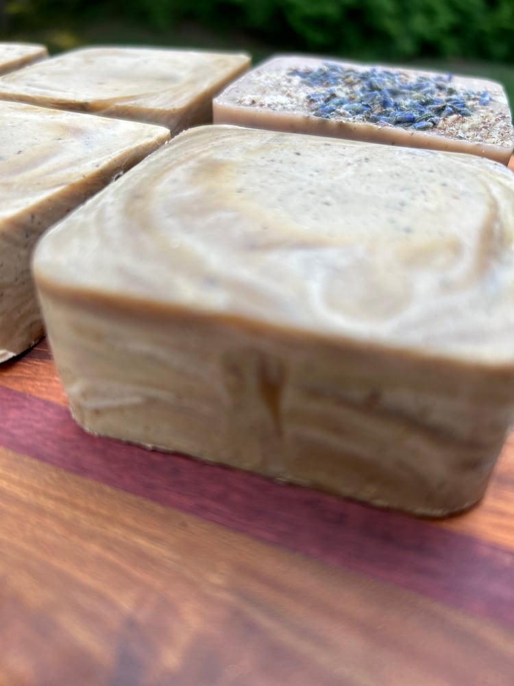 THE EXFOLIATING PROPERTIES IN THIS SOAP DELIVER OPTIMAL CELL-REGENERATION AND SMOOTH, SOFT SKIN. CAFFEINE IS TRULY THE STAR — But the added exfoliants leave your skin squeaky clean, radiant, smooth and soft!!