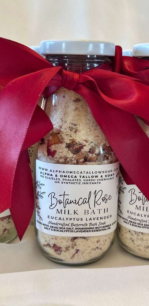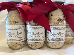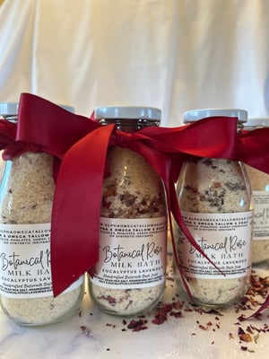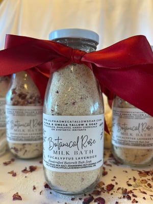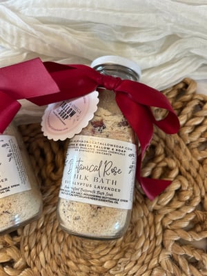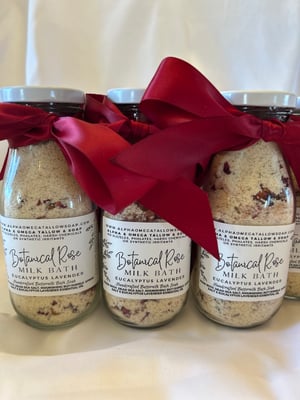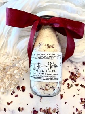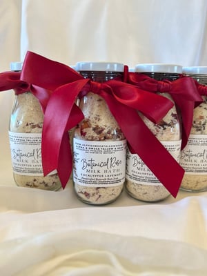 Relax and immerse your senses in this Lush Rose Botanical Milk Bath. Packed in an Old Fashioned Milk Glass Jug. This listing is for one 10oz Jar