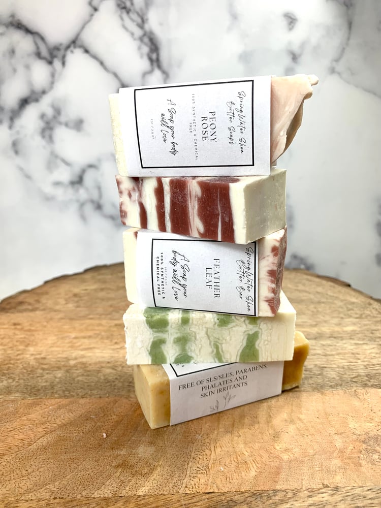 Colors in every bar of soap come from Clays that are widely known for there Highly Nourishing and well renowned dense Mineral content as well as for there Detoxifying, Exfoliating and Cell-Regenerating Properties. Widely used in Skin Balancing & Hydrating Face & Body Masks.
