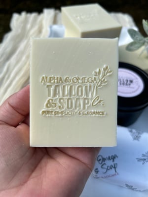 Unscented Bar Ingredients: Saponified Grass-Fed Pasture-Raised Tallow, Organic Coconut Oil, Organic Castor Oil, Extra Virgin Olive Oil & Spring Water